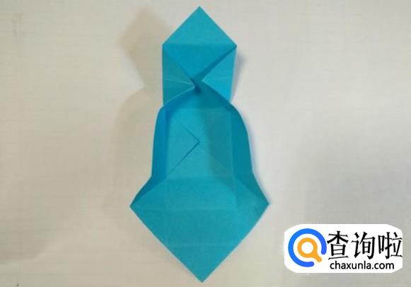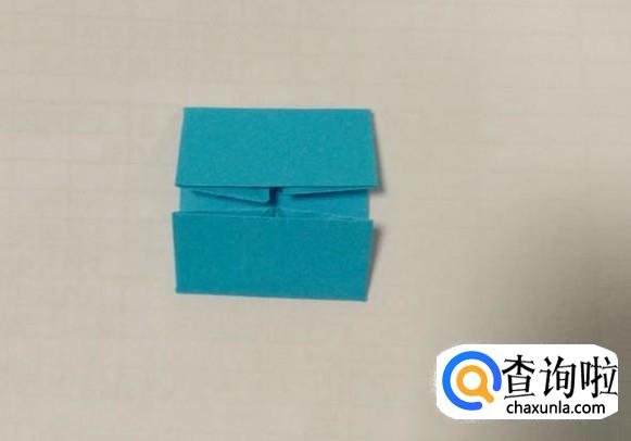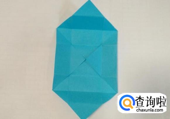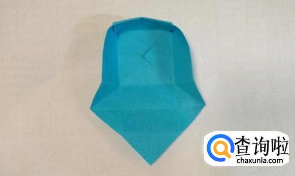 然后依据折痕将折纸的上面按下图的样子将尖角翻折进纸盒的底部。