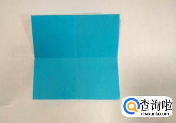 将正方形纸沿两条中心线对折后打开。