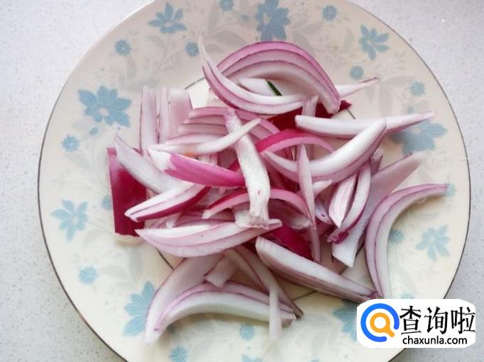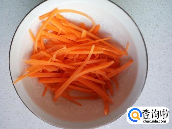 圆葱去皮,用水清洗干净,控干水分,切成丝,胡萝卜去皮,用水清洗干净,控干水分,切成丝。