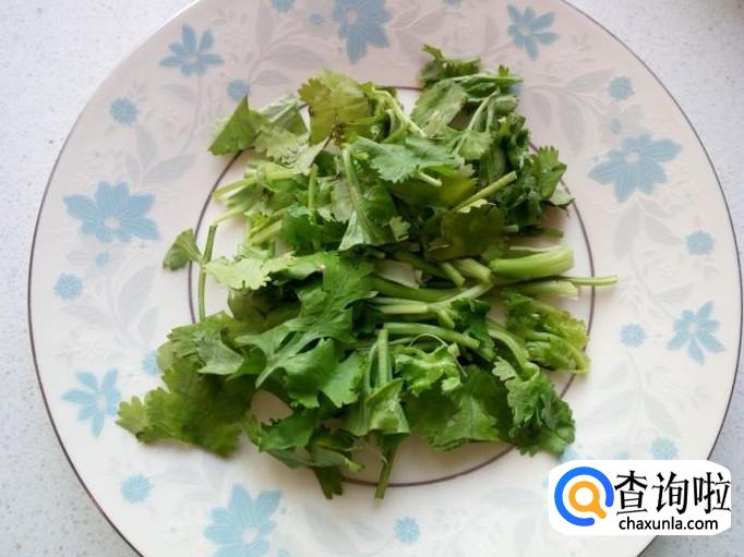 香菜用水清洗干净,控干水分,切成小段。蒜切成碎末。