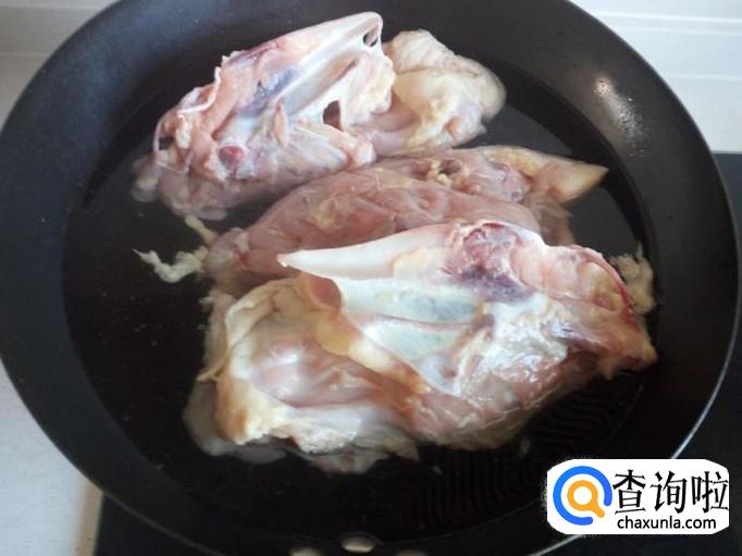 把鸡架放入冷水锅中烧开,开锅一分钟后,把鸡架捞出,用水清洗干净(血水和沫子),沥干水分。