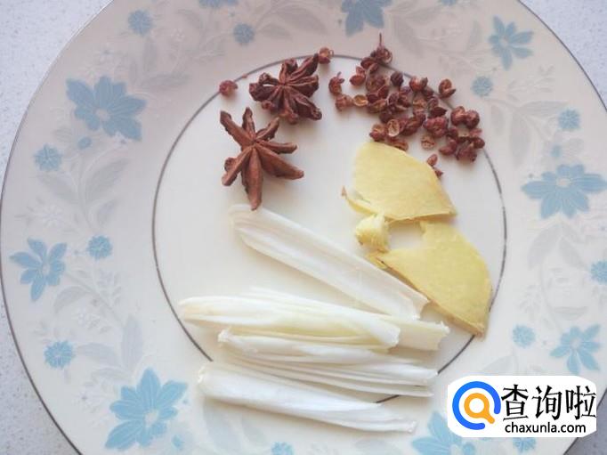 鸡架收拾清洗干净,控干水分。切好葱,姜,准备好花椒,八角备用。