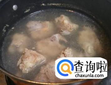 首先我们把准备好的排骨,剁成块状,然后过热水焯一遍。