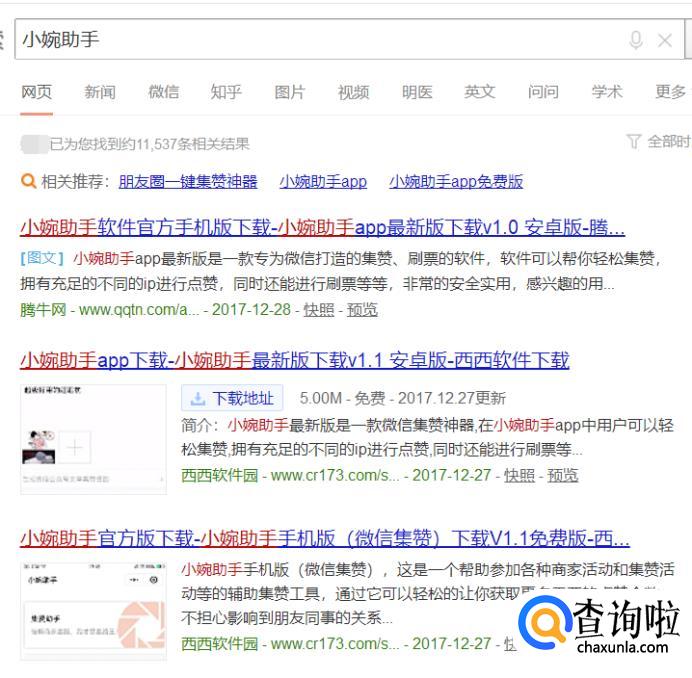 我们打开浏览器,在浏览器里面搜素“小婉助手app”,下载安装这个软件。