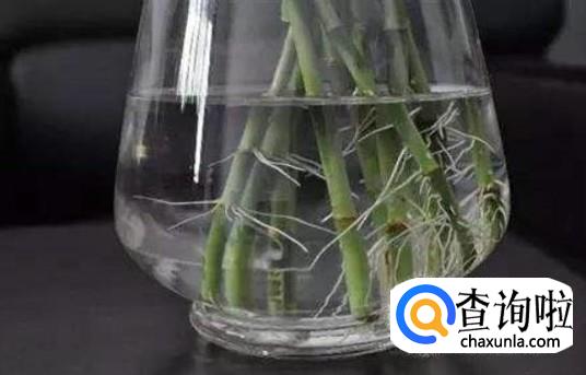 把下端的叶子去掉,以免在扦插时触水腐烂。然后插入到准备好的清水中。注意没有叶子的枝条上下不要颠倒。