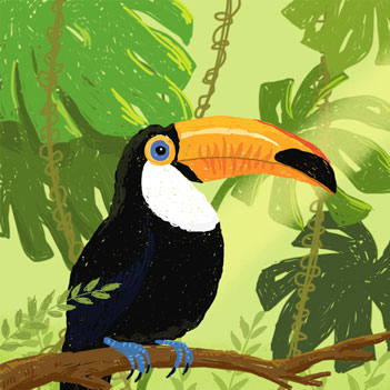 巨嘴鸟体长约67厘米,嘴巨大,长17~24厘米,宽5~9厘米,形似嘴刀,有记录发现最大的嘴长达30厘米,差不多是它们身体的一半了。嘴非常漂亮,上半部黄色,略呈淡绿色,下半部呈蔚蓝色,喙尖点缀着一点殷红。眼睛四周镶嵌着天蓝色羽毛眼圈,胸脯橙黄色,脊部为漆黑色。色彩艳丽和惊人的大喙使其观赏价值极高。主要以果实、种子、昆虫、鸟卵和雏鸡等为食。以树洞营巢。主要分布在南美洲热带森林中,尤以亚马逊河口一带为多。因为这种鸟嘴大的出奇,所以叫它巨嘴鸟,是世界上嘴巴最大的鸟。