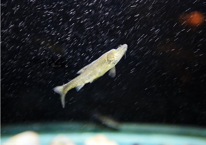 你知道吗?在鱼类中,有一种没有眼睛的鱼。在我国南方某地的暗河里,有一种鱼。这种鱼的体长不过六七厘米。它除了没有眼睛,身上还有不少特别之处。盲鱼嘴边长有四根短短的胡须,尾鳍分成了叉,通过半透明的身体隐约可以看到它的脊椎和内脏。最让人感到好奇的是,它虽然没有眼睛,却很怕光。