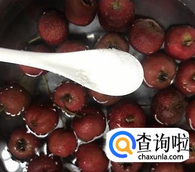 接着,我们将准备好的山楂放入淡盐水浸泡20分钟。