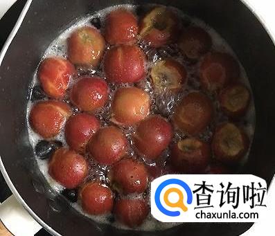 熬煮好了之后,将山楂倒入锅中,开中火煮五分钟即可。