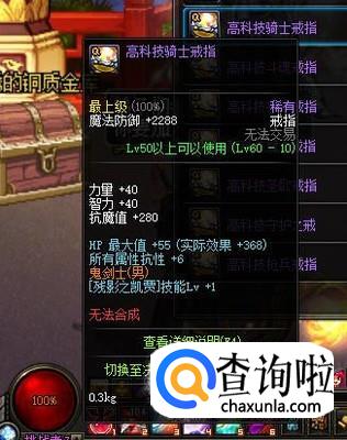 戒指方面,通过完成外传任务中的“梅尔文的高科技”,在任务奖励中选取“高科技骑士戒指”,也可以提升1级的【残影之凯贾】技能等级。