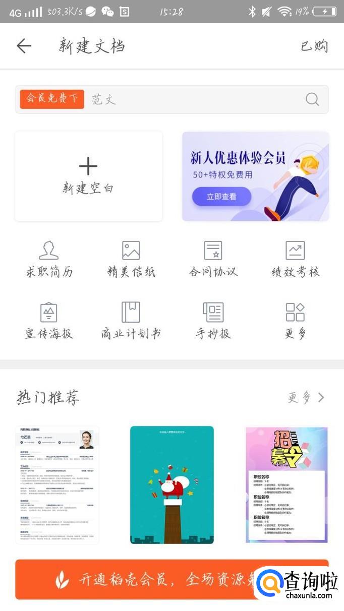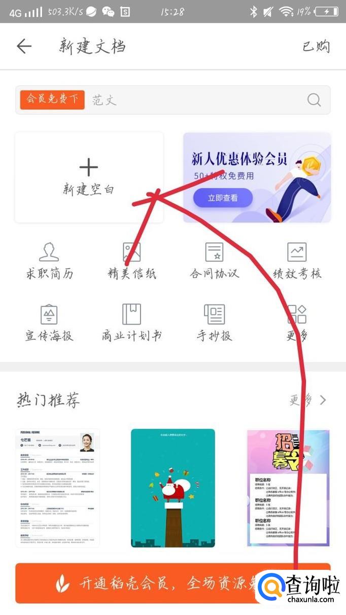点击“新建空白”选项,如图1箭头所示。你会看到进入一个新的界面,这样你就可以用手机写办公文档了。