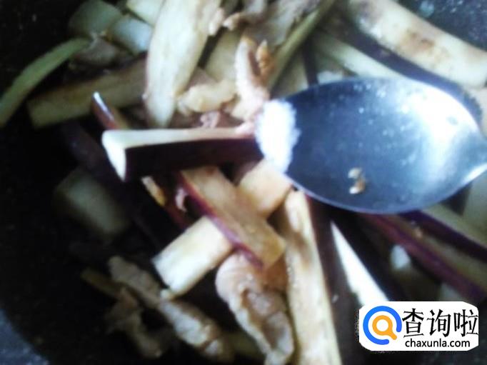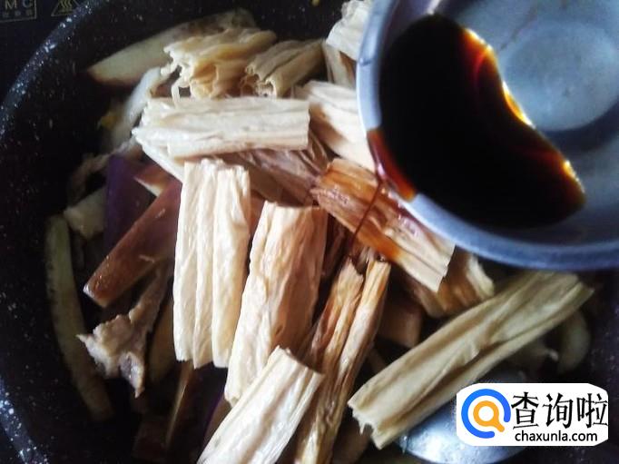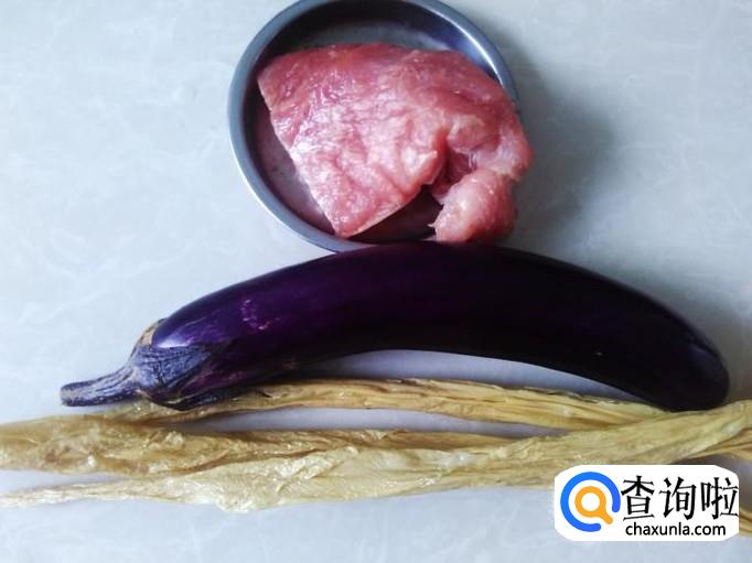 茄瓜1个,干腐竹100克,猪肉150克,姜蓉、蒜米适量,2勺生抽,1勺料酒。
