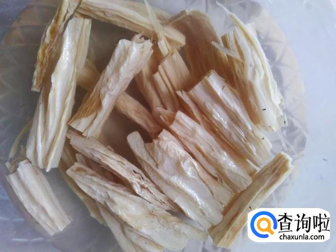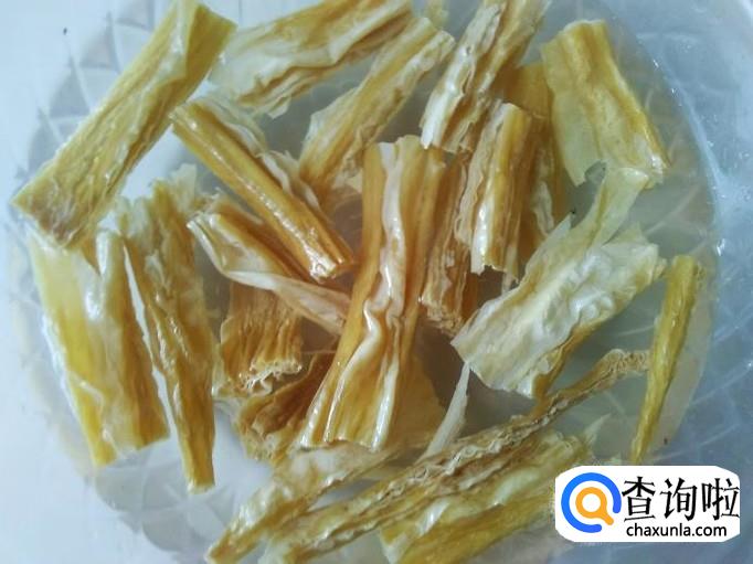 腐竹用剪刀剪成一段段,放到水里泡发。
