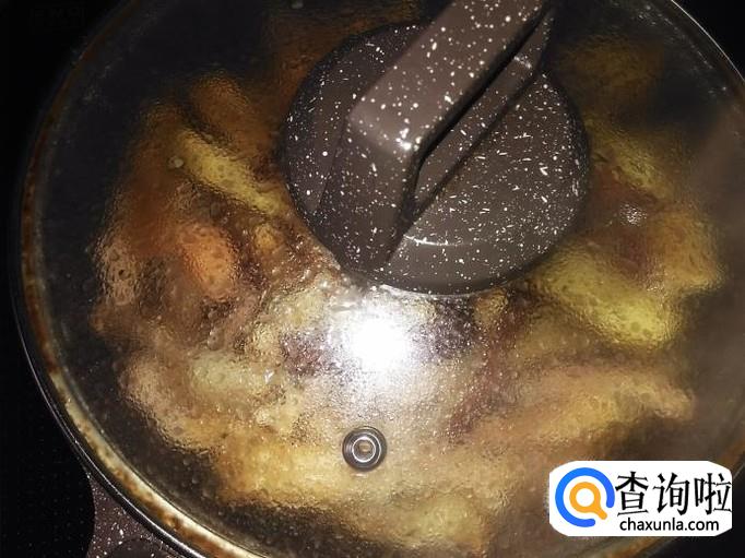 翻炒10秒左右,盖上盖子小火焖5分钟左右。