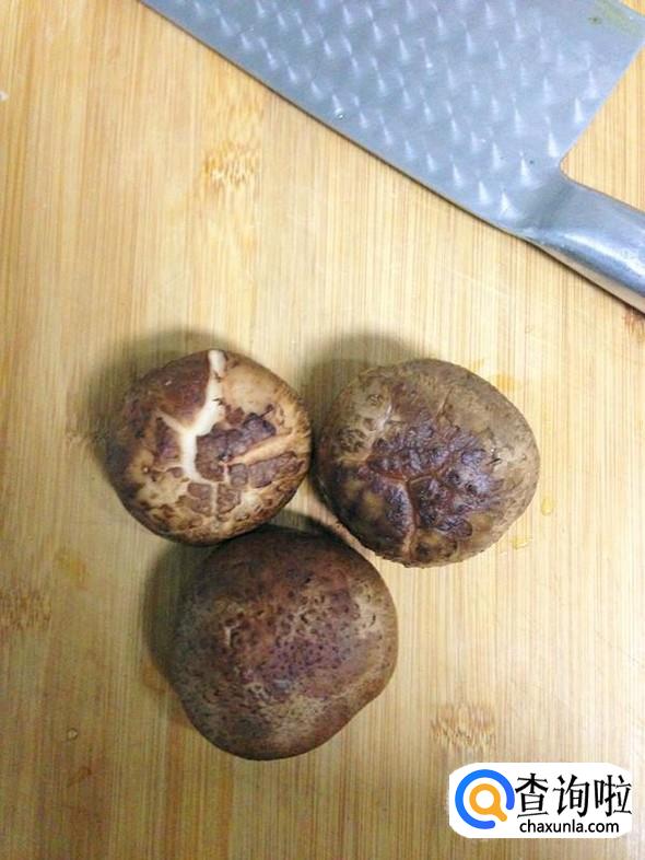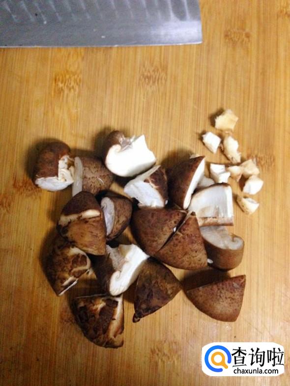 将香菇柄剪下,香菇切成小块,香菇柄掰成小块。