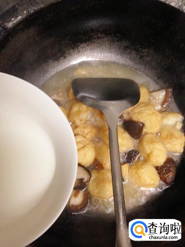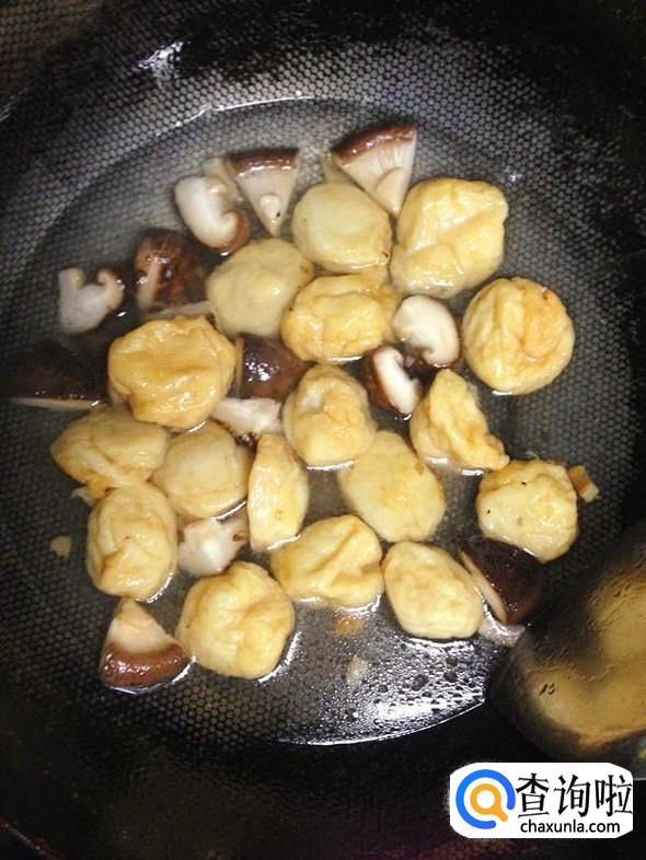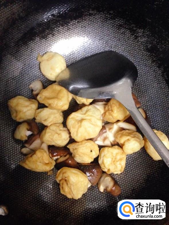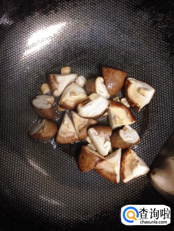 油锅烧热,把切成小块的香菇放入大火翻炒。