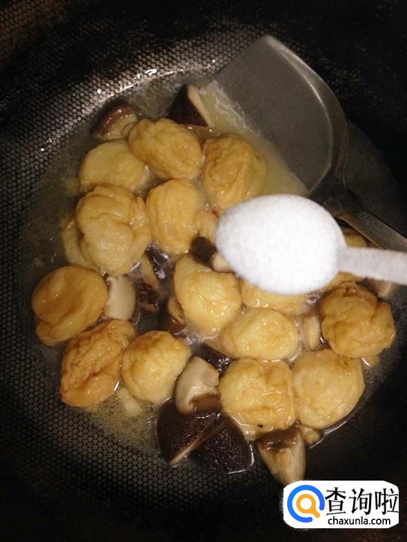 煮2-3分钟,当鱼面筋渐渐有所膨胀时,加入1小勺盐。