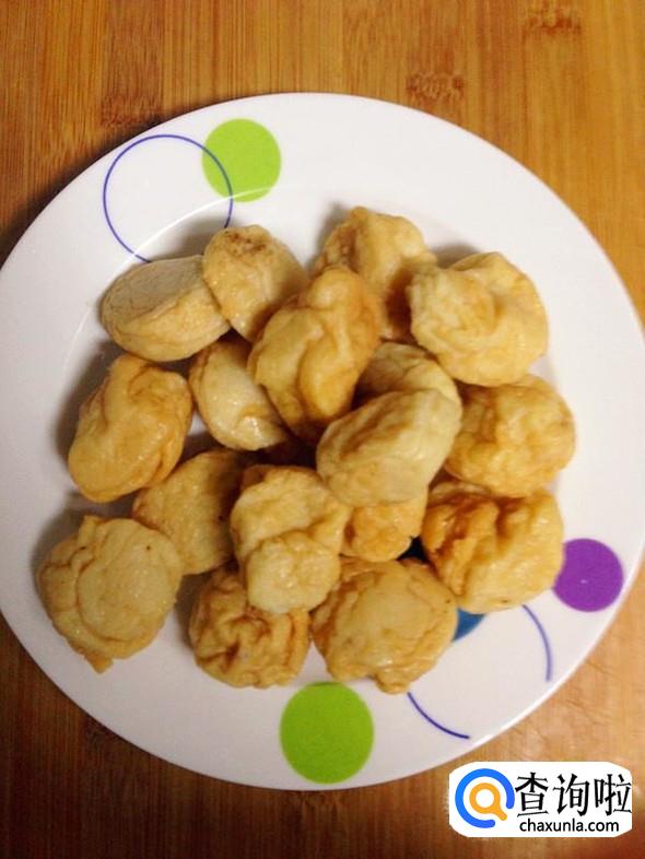 准备好鱼面筋,用温水冲洗后沥干水分待用。