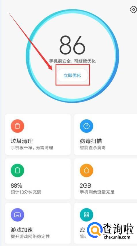 点击“立即优化”,可以清空手机目前被占用的内存。
