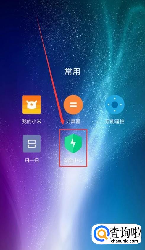 找到手机上的“安全中心”。