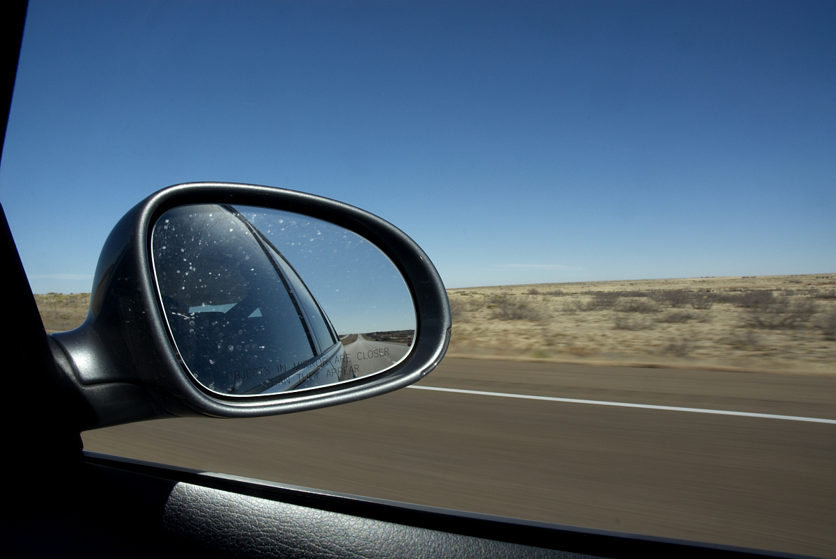 右侧后视镜调整要领:把水平线置于后视镜的2/3位置,然后再把车身的边缘调到占据镜面影像的1/4。