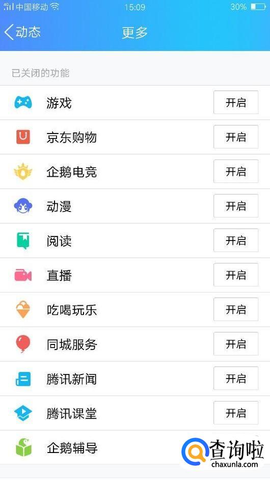 出现一个未开启的功能界面,若是有需要的,点击开启就会在前一个界面找到。