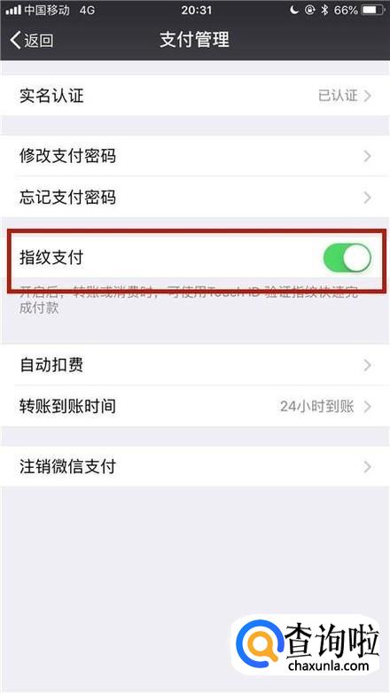 通过以上操作,我们就成功开启了苹果手机中的微信的指纹支付了。