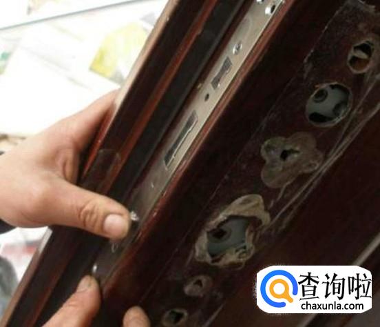 然后将坏锁体从门洞中直接拿出来,拿出准备好的新锁体放入,关键的地方到了,需要上下调校新锁体的位置,刚好对准锁扣,然后保持不动。