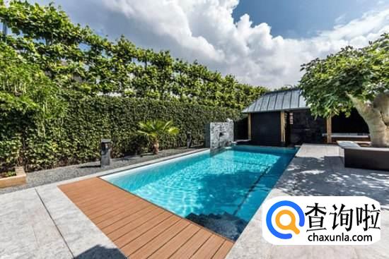 游泳池旁可以根据自己的喜好建造一些摆饰品。