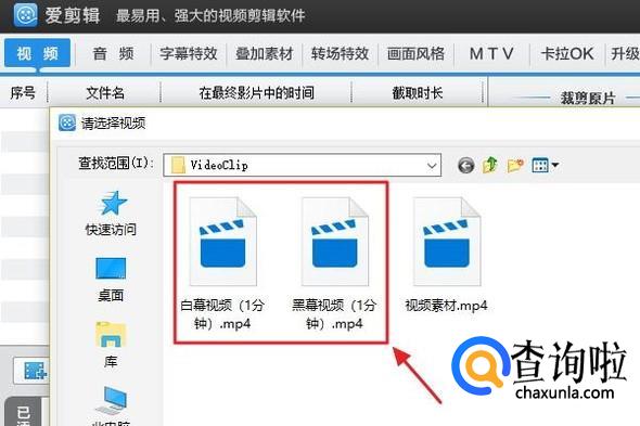 不过我们一定要选择爱剪辑自带的“黑幕视频”或者“白幕视频”,也就是不带有实质内容的视频,如下图;