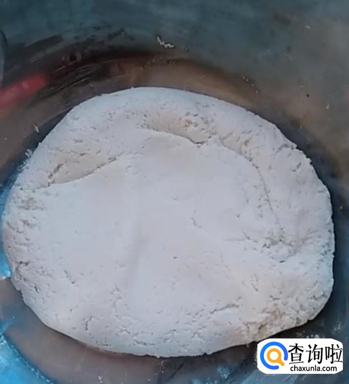 和面的步骤可以和蒸紫薯的步骤一起进行。比例是,一斤糯米粉,加5克酵母,5克泡打粉,和成面团,面团揉得越均匀越好。然后放置温暖处醒发20分钟。