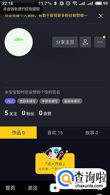 在“我”的界面,我们同样能够查看个人的详情信息,比如关注数,粉丝数、点赞数以及作品等等。
