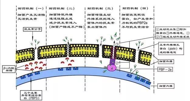 四是“关门大吉“,通过改变细胞膜的通透性使抗生素无法进入细菌体内。