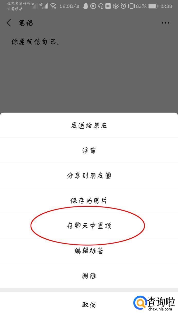 点击“在聊天中置顶”。