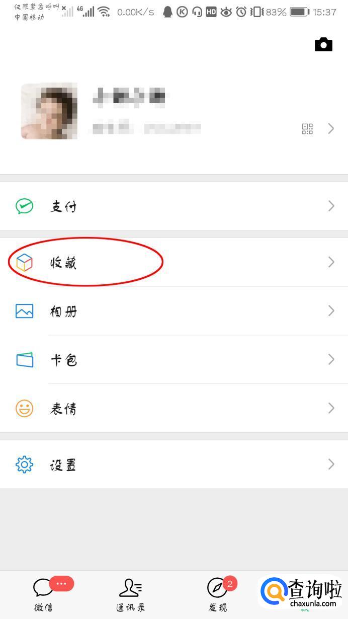 打开微信,点击“我”。点击“收藏”。