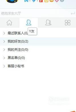 进入页面之后,在上边找到“y友”一栏,点击一下,在里面能找到自己的好友。