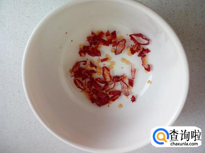 蒜剁成碎末,红干椒切成细丝。