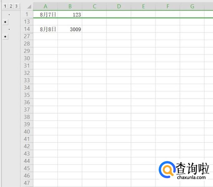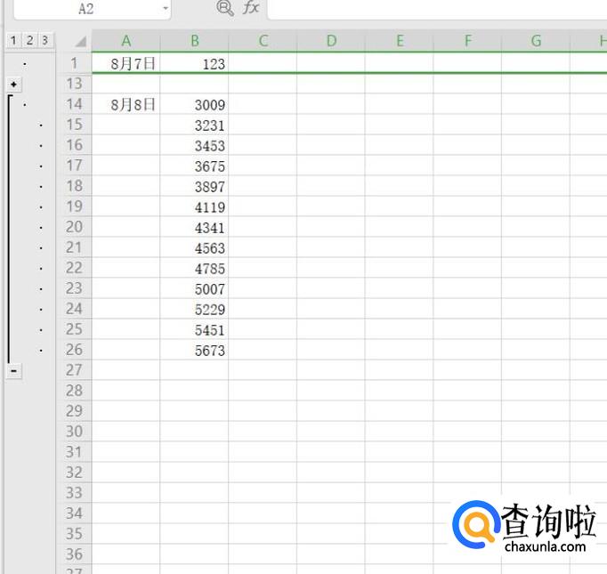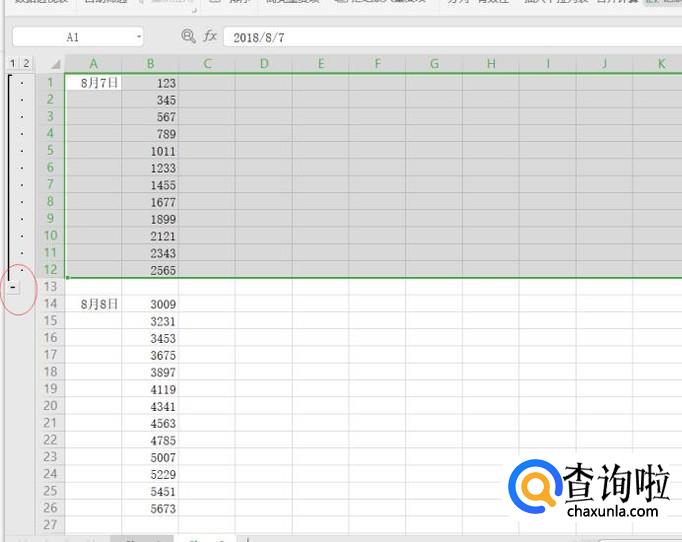 出现如下图所示的符号 -,点击-,可以折叠7号的数据,-变成+