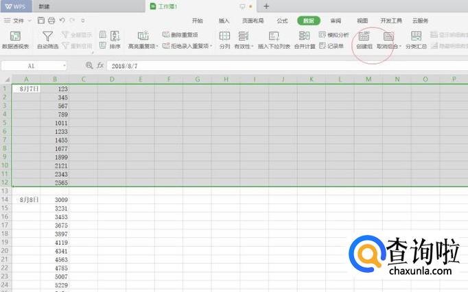 打开一份数据表,如下图,需要根据日期分组,方便的查看每天的数据