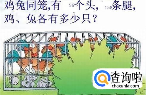 由此,得出了一个公式,实在不懂的直接背公式。 兔数=(原有腿数-每只鸡腿数×鸡兔总数)÷(每只兔腿数-每只鸡腿数) 鸡数=鸡兔总数-兔数