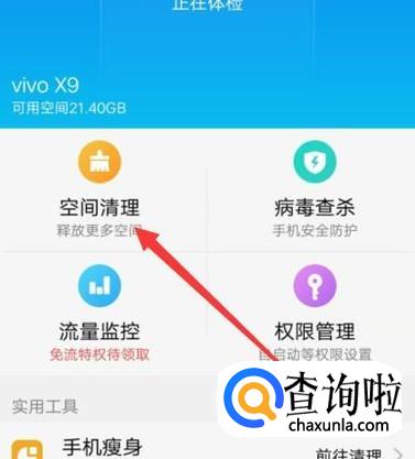 进入之后,点击“空间清理”,进入下一页面,如图所示。