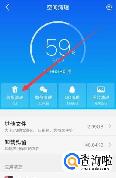 进入之后,点击“垃圾清理”,进入下一页面,如图所示。