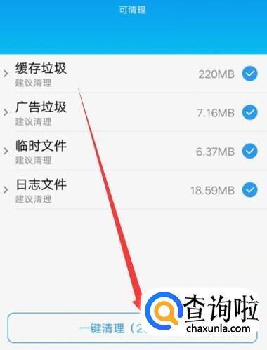 进入之后,点击将需要清理的东西勾选上,点击“一键清理”,如图所示。