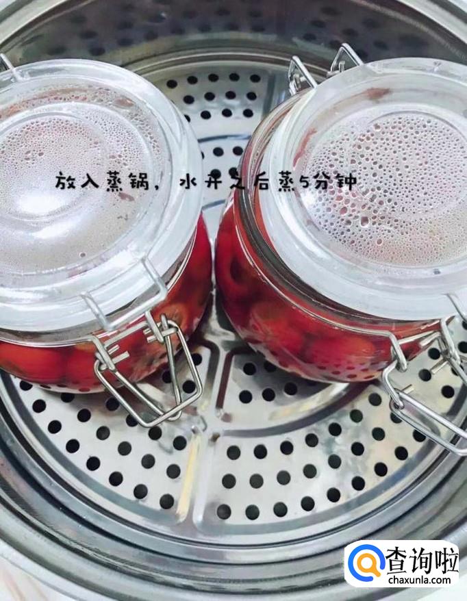 等到山楂罐头蒸好后马上用盖子密封起来,如下图所示。