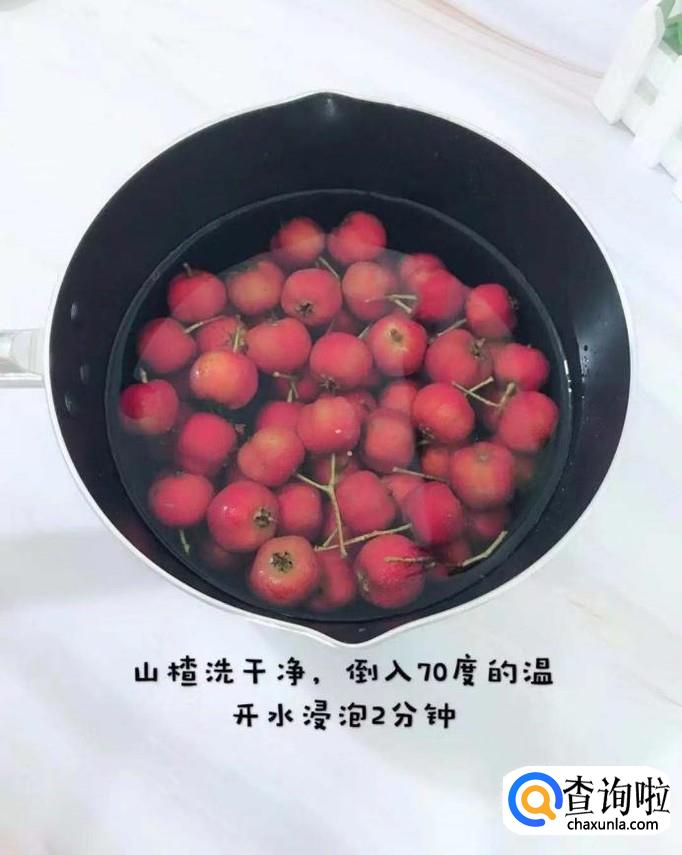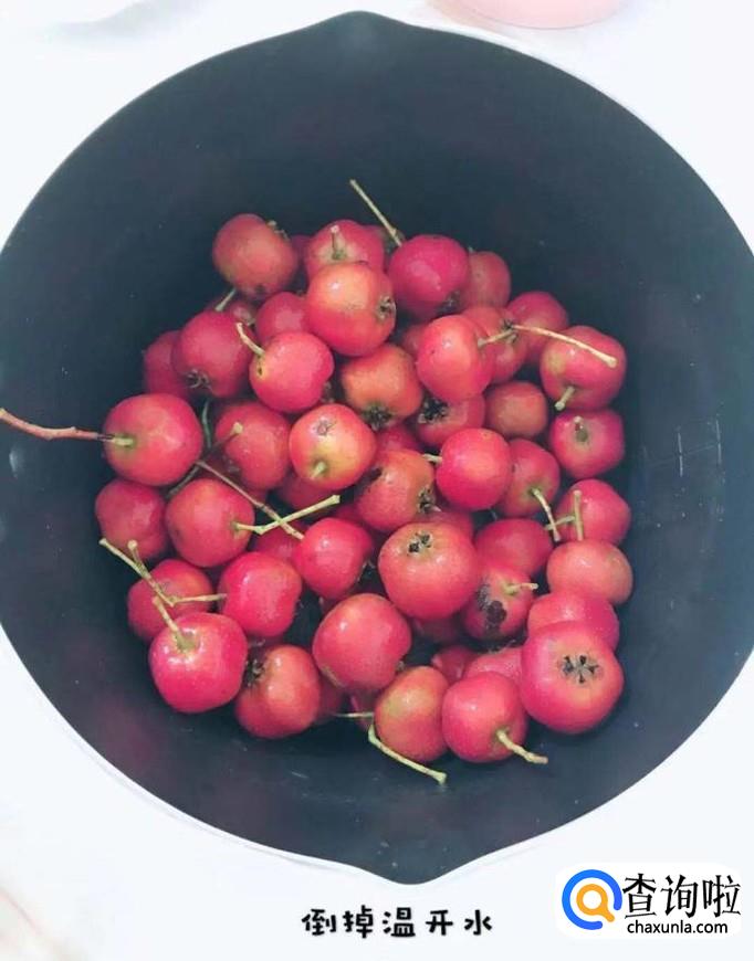 首先将山楂洗干净,倒入70°的温水中浸泡两分钟,如下图所示。