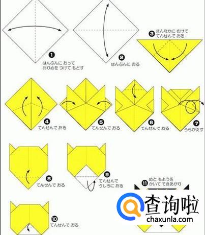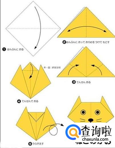 下图是小猫的折法,步骤很少,简单易学。