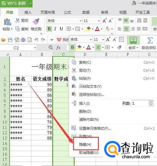 隐藏后的效果如下(大家看看C列是不是没了)。