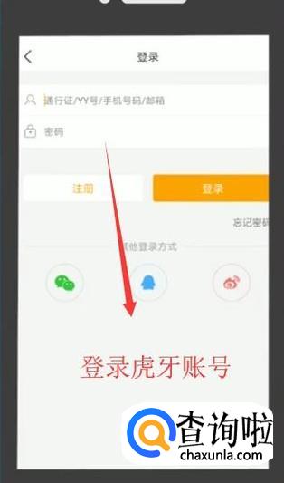 然后安装好APP以后,我们输入虎牙的账号,如下图所示