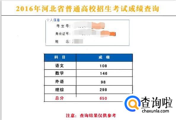 登录后我们就看到了自己的高考成绩,如图