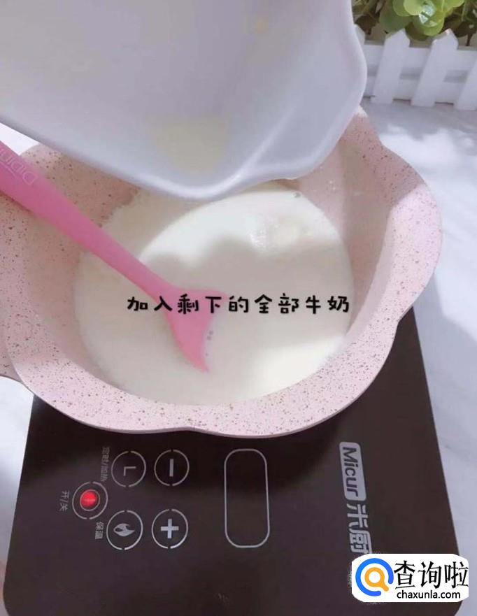 然后加入一点牛奶,搅拌至无颗粒状,如下图所示。
